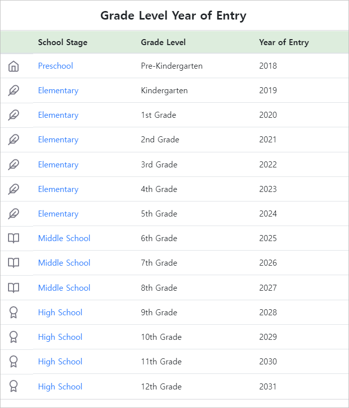 한국에서 미국으로 오시는 경우 미국과 한국의 나이 기준이 다르기 때문에 미국 나이로 긴가민가 싶고 학년은 더욱 더 아리까리 합니다.